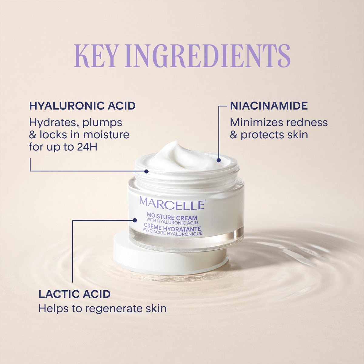 A moisturizing day cream that combines the plumping power of hyaluronic acid with the soothing properties of niacinamide (vitamin B3). Its smooth texture provides continuous 24-hour hydration, restoring comfort and suppleness to dry skin. Available in a 75 mL bonus size.